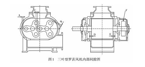 羅茨鼓風機的葉輪與葉輪之間及葉輪與機體之間存在相對運動,處于非接觸狀態,必須有合適的工作間隙,才能保證既有密封作用又能使風機正常運轉。