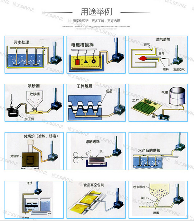 羅茨風機結構簡單,制造方便,廣泛應用于水產養殖增氧、污水處理曝氣、水泥輸送,更適用于低壓力場合的氣體輸送和加壓,也可用作真空泵。