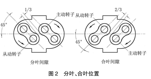 合葉為主動轉子的嚙合面向被動轉子有靠近的趨勢;分葉為主動轉子的嚙合面向被動轉子有遠離的趨勢。若轉子分、合葉間隙不合適,可調整齒套與輪轂或齒輪與軸的周向相對角度。